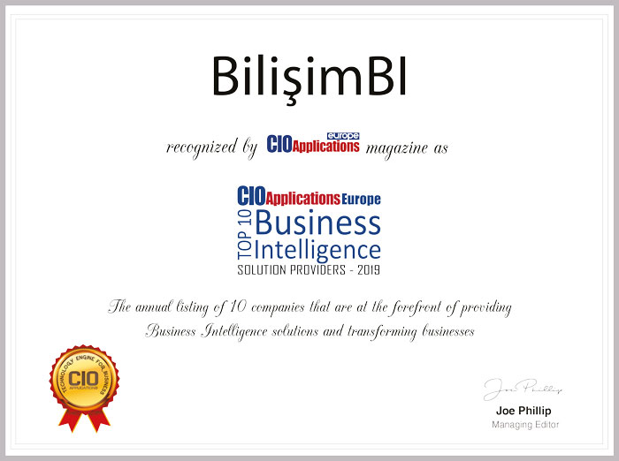 Yerli İş Zekası Sistemi BilişimBI ürünümüz CIOApplications Europe tarafından Avrupa’nın en iyi 10 iş zekası çözüm sağlayıcısı arasında gösterildi.